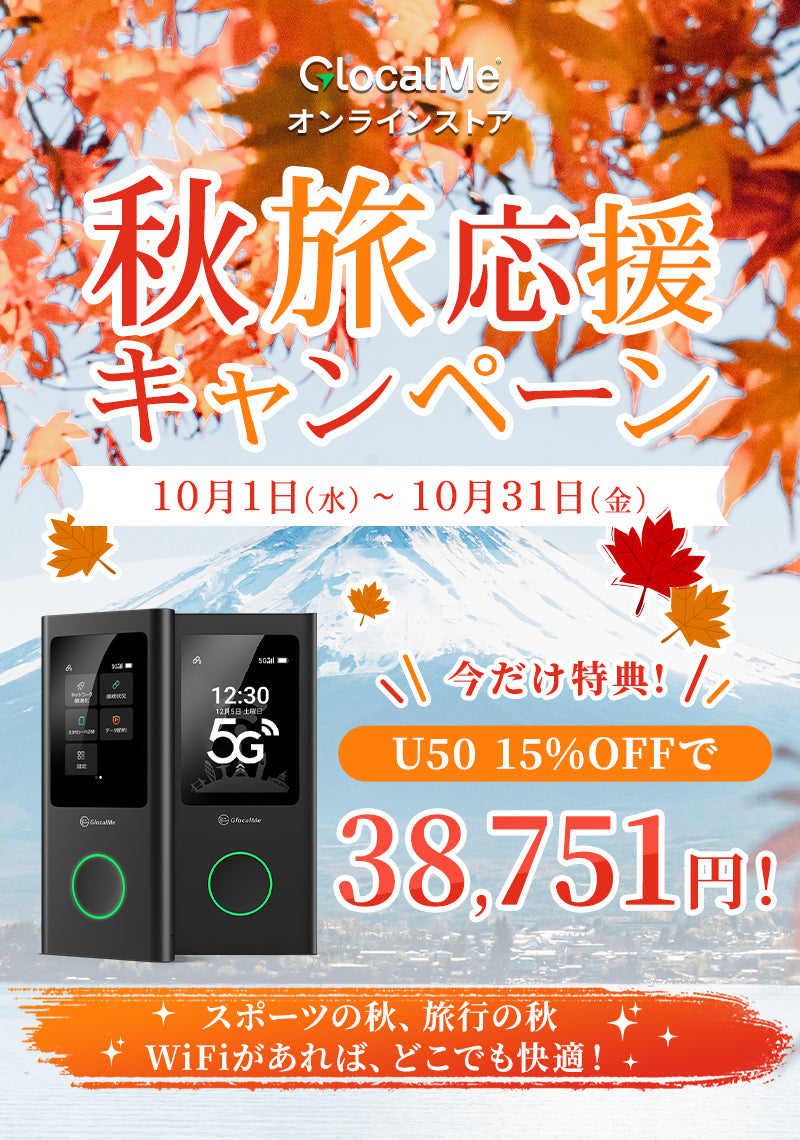 「海外旅行中でもネット環境を快適にしたい」「出張先での通信トラブルをなくしたい」 そんなあなたにぴったりなのが、GlocalMeの5G対応モバイルWi-Fi『Numen Air U50』です。 Numen Air U50は、世界中で使えるクラウドSIM対応機種でありながら、5G通信や複数端末接続といったハイスペックを兼ね備えています。 トミー 今回は、Numen Air U50の魅力から実際に使ってみたレビュー、そして気になるデメリットやよくある疑問まで、徹底的に解説します! Numen Air U50の特徴 4Gは世界200以上、5Gは80以上の国と地域で利用可能 約194g・厚さ約14.3mmの軽量&薄型設計で持ち運びも快適 5G対応&最大下り2.5Gbps・上り500Mbpsの高速通信 5,400mAhの大容量バッテリー搭載、モバイルバッテリー機能付き データ通信量の確認・チャージがアプリで簡単にできる Numen Air U50 この記事の著者:トミー(ネットワーク・移動体通信エンジニア) 通信業界20年目、現役の移動体通信技術者です。これまでに3Gの周波数再編や4G LTEの立ち上げ、災害で使用できなくなったネットワークの復旧対応、東京オリンピック・パラリンピック競技会場、EXPO 2025 大阪・関西万博のネットワーク構築計画推進、BWAのエリア構築などを行い、北海道から沖縄まで日本全国のモバイル通信を陰で支えてきました。現在は5Gのエリア構築に深く携わっています。総務省認定:第一級陸上特殊無線技士(関東総合通信局 免許番号:ABXJ01740) » 著者プロフィール詳細 当サイト限定特典!下記のクーポンコード入力で18%オフ!...